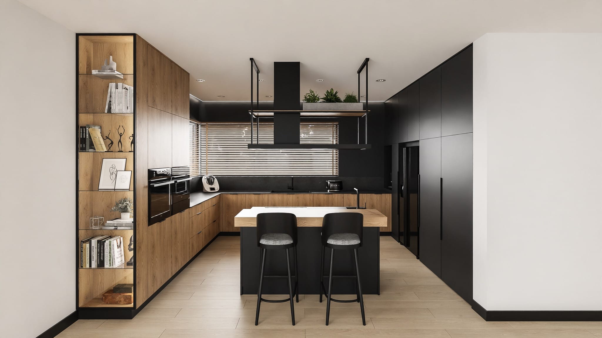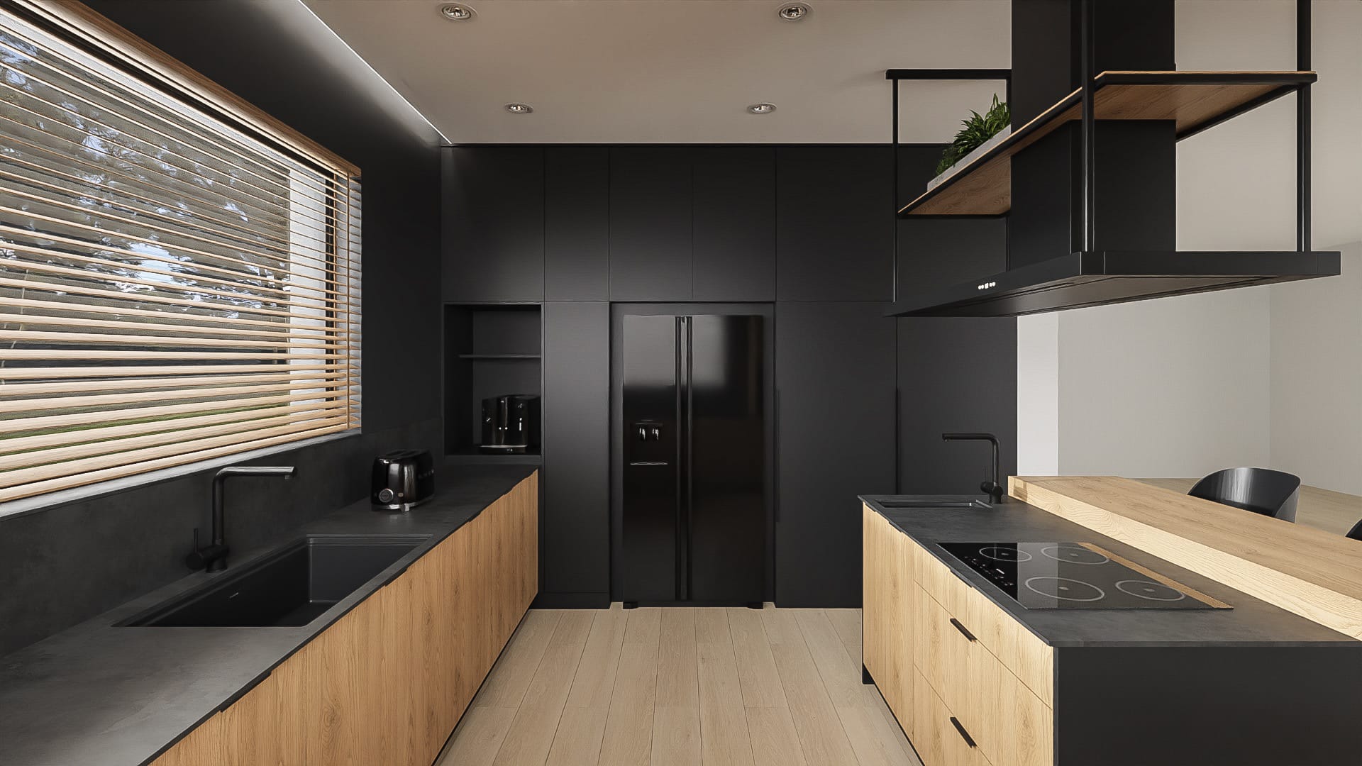 Kolor czarny od dawna króluje w modzie. Obecnie popularny stał się także w aranżacjach wnętrz, do tego stopnia, że uznany został za trend 2023/2024, stając się uosobieniem klasy i elegancji. Czy wiesz, że kuchnia czarno-drewniana to jeden z największych hitów aranżacyjnych 2023 i 2024? Dlaczego to połączenie jest tak pożądane? Czerń dodaje wnętrzu elegancji, natomiast drewno – przytulności. Drewniane akcenty tonują surowość czarnych elementów, dzięki czemu kuchnia staje się bardziej przytulna. Zatem w ogóle nie dziwi nas fakt, że czarna kuchnia z drewnem, jest projektem cieszącym się taką popularnością. Odpowiednio przemyślany i zrealizowany projekt, pozwoli na stworzenie kuchni, która będzie nie tylko funkcjonalna, ale stanie się ozdobą domu czy mieszkania na długie lata.